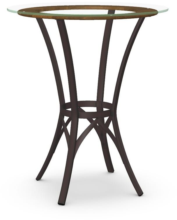 Clear glass bar height tabletop with a 36" diameter.