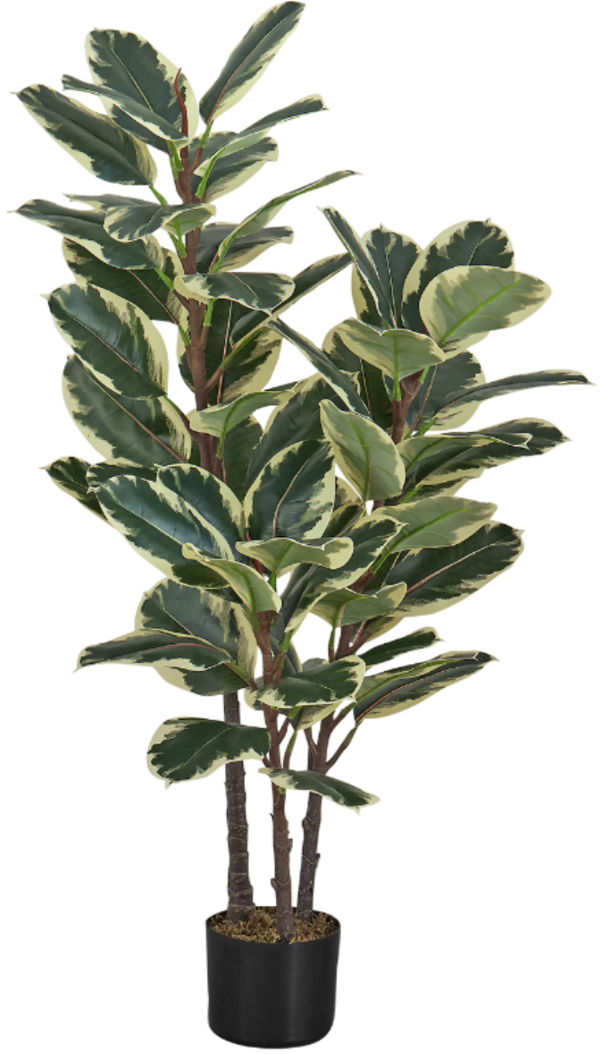 With its variegated green leaves, edged in creamy white, along with a real-touch plastic finish and high-quality materials, this highly durable, potted artificial plant looks amazing and requires no maintenance or watering. Firmly fitted in a simple, black 5" pot with natural moss dressing on top, this environmentally friendly fake tree plant is the perfect addition to any room. Add this bit of this floor greenery to your decor mix without any time-consuming care.