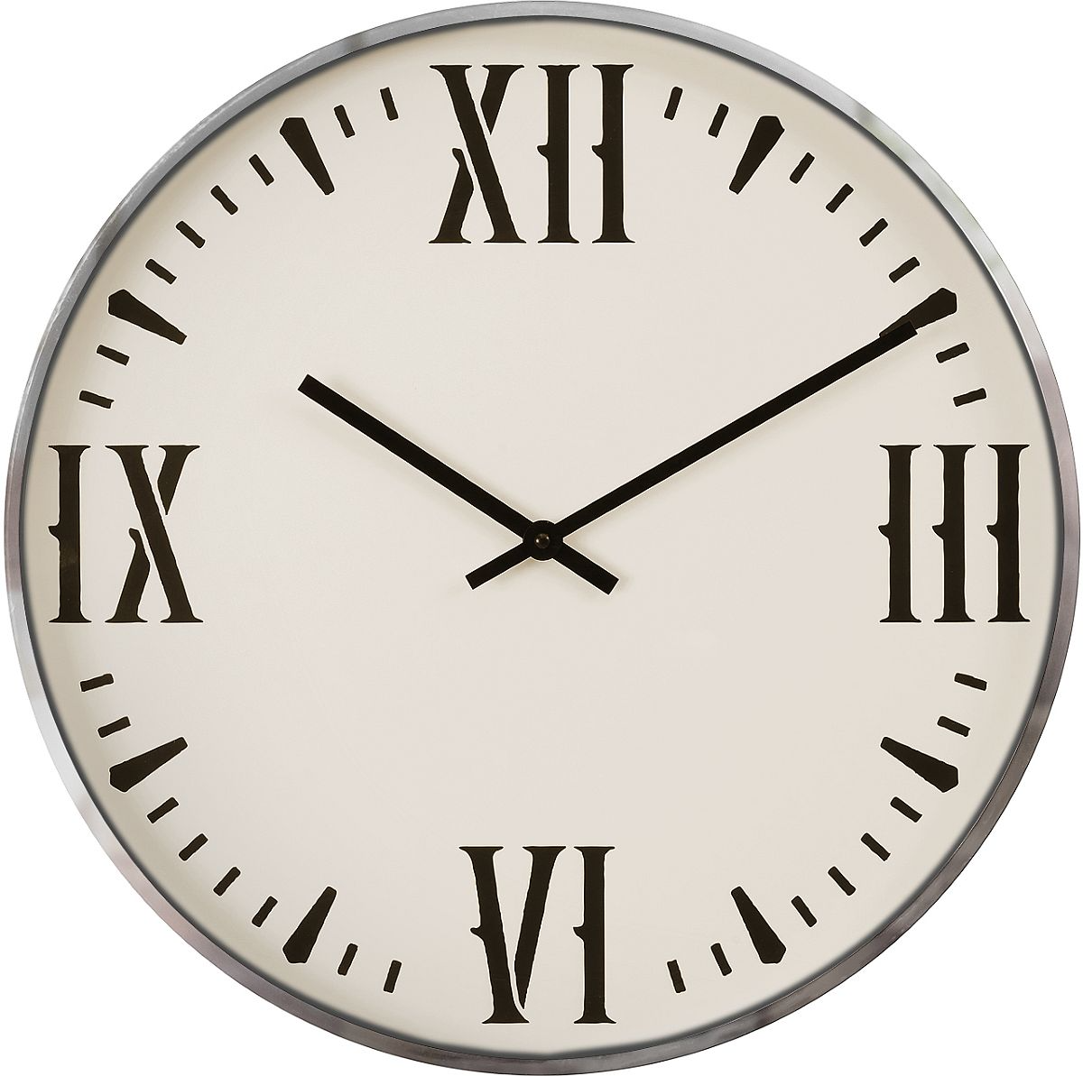 This sleek and modern 20" round wall clock with a bold, printed black roman numeric design against a white background, for a chic addition to your home decor
