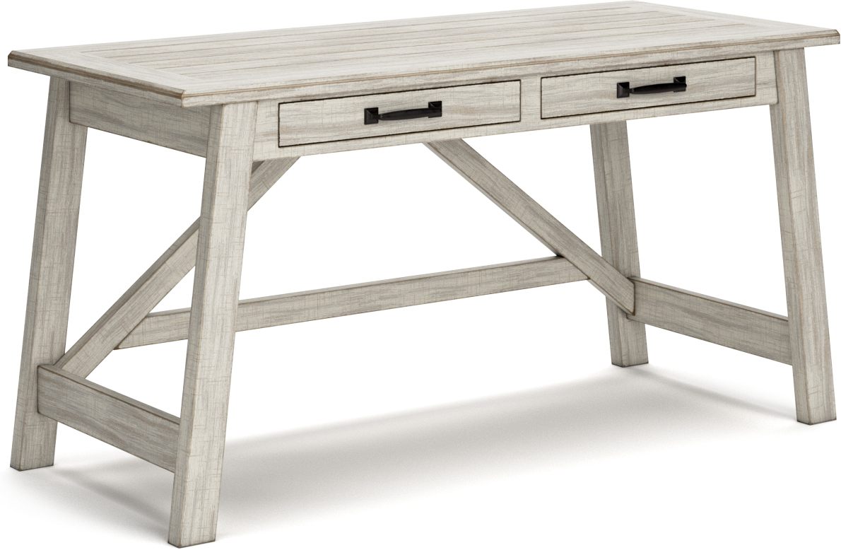 Store your office essentials inside 2 easy-glide drawers on the Carynhurst home office desk. The decorative pulls add character to the casual design of canted legs and a distressed wood finish.