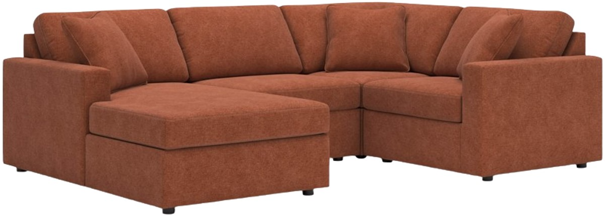 Includes 5 Modular Pieces: Left-arm facing corner chaise, wedge, right-arm facing corner chair, and 2 armless chairs